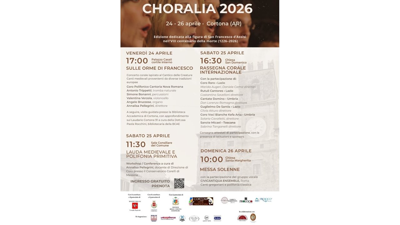 Choralia Cortona 2026: tre giorni di musica nel cuore della ToscanaDal 24 al 26 aprile 2026 Cortona...